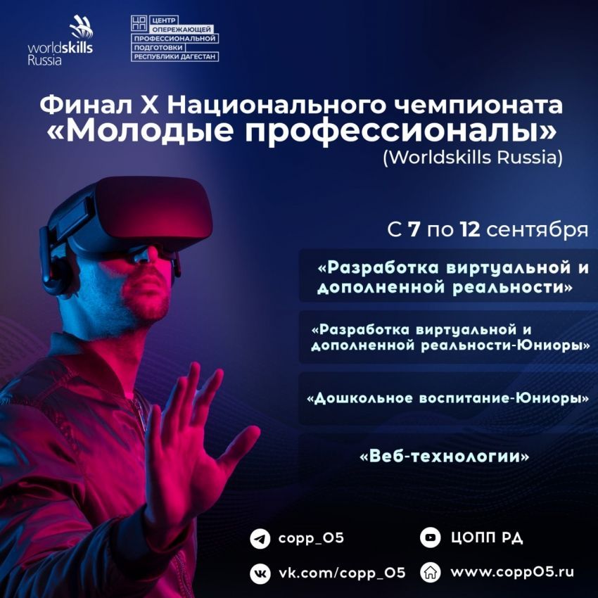 С 7 по 12 сентября на площадках Центра опережающей профессиональной подготовки Махачкалы пройдет финал X Национального чемпионата «Молодые профессионалы». Мероприятие состоится в дистанционном формате. На соревнованиях выступят 5 экспертов и 6 конкурсантов по компетенциям: «Дошкольное воспитание-Юниоры», «Разработка виртуальной и дополненной реальности», «Разработка виртуальной и дополненной реальности-Юниоры» и «Веб-технологии». Как обещают организаторы, юбилейный Национальный чемпионат станет во...