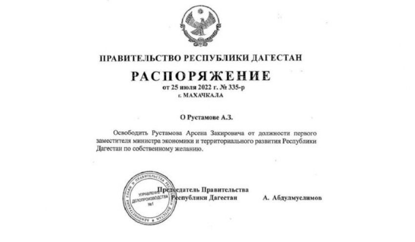 Арсен Рустамов освобождён от должности