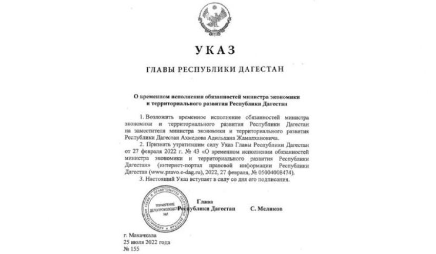 В Минэкономразвития РД назначен новый руководитель