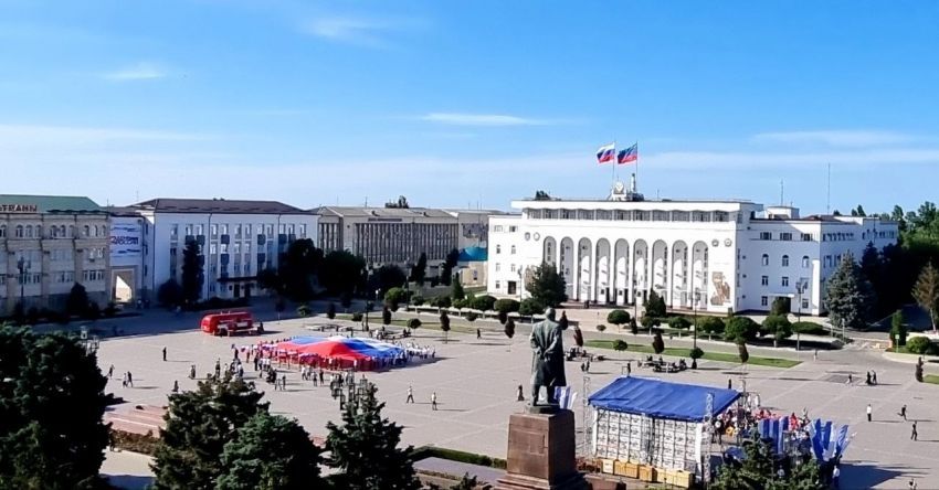 Огромный триколор развернули на главной площади Махачкалы в День России