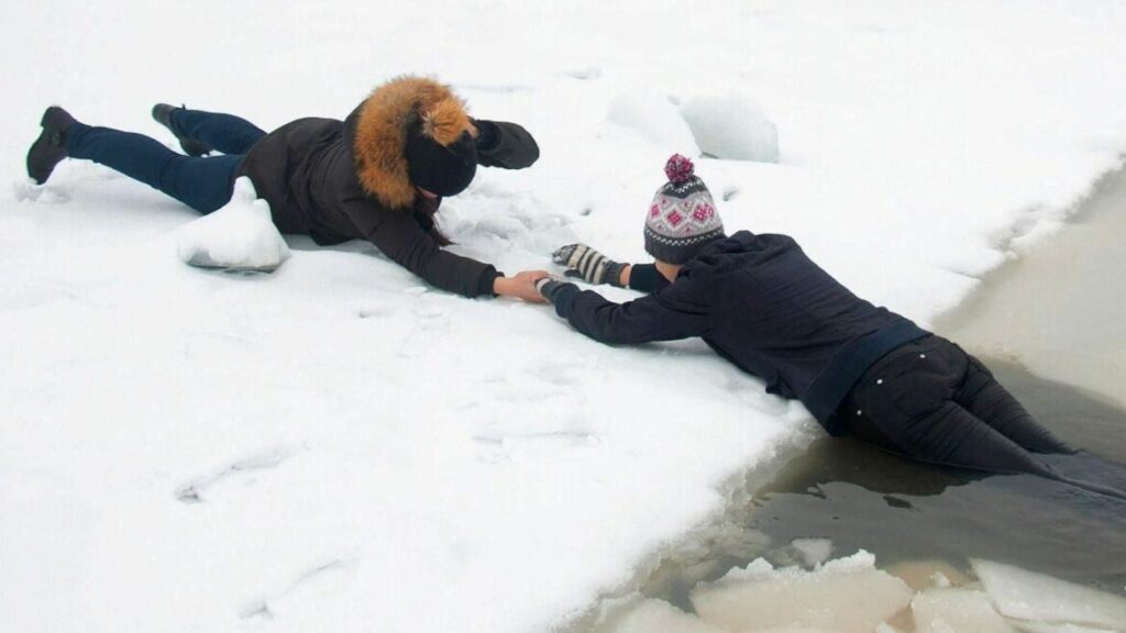 - Не подавайте руку с близкого расстояния — можно провалиться вместе.
