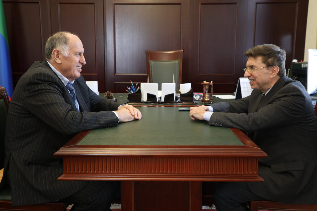 Премьер-министр Дагестана Абдулмуслим Абдулмуслимов провел рабочую встречу с художественным руководителем государственного ансамбля танца Дагестана «Лезгинка» Джамбулатом Магомедовым.