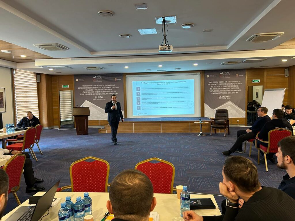 Директор Центра разработок и аналитики ФОИР ВШГУ РАНХиГС, академический директор программы «Время героев» Сергей Проценко провел для участников программы «Доблесть гор» обучающий семинар: «Готовность к управленческому взаимодействию. Трек сопровождения личностно-профессионального развития».